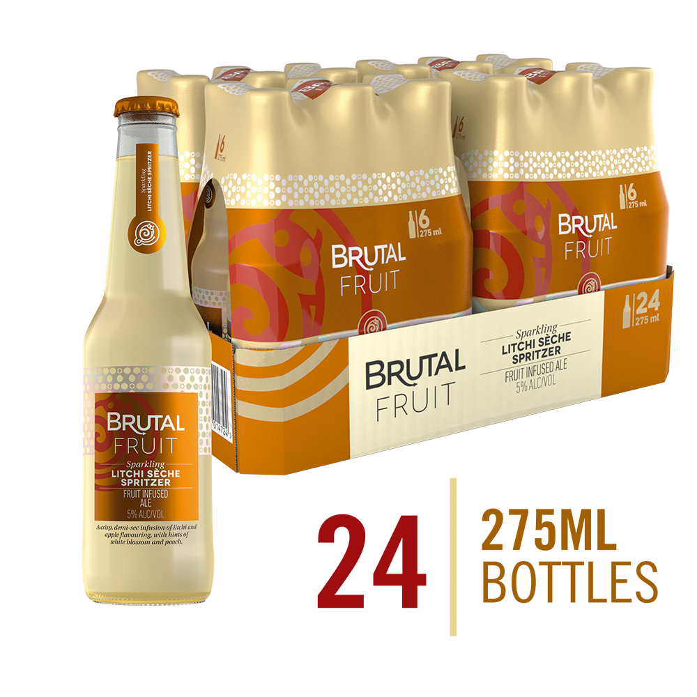 Brutal Fruit Litchi Seche Spritzer has a beautifully, complex and sophisticated taste profile that brings a refreshing sweet-dry balance to the Brutal Fruit Spritzer range.
